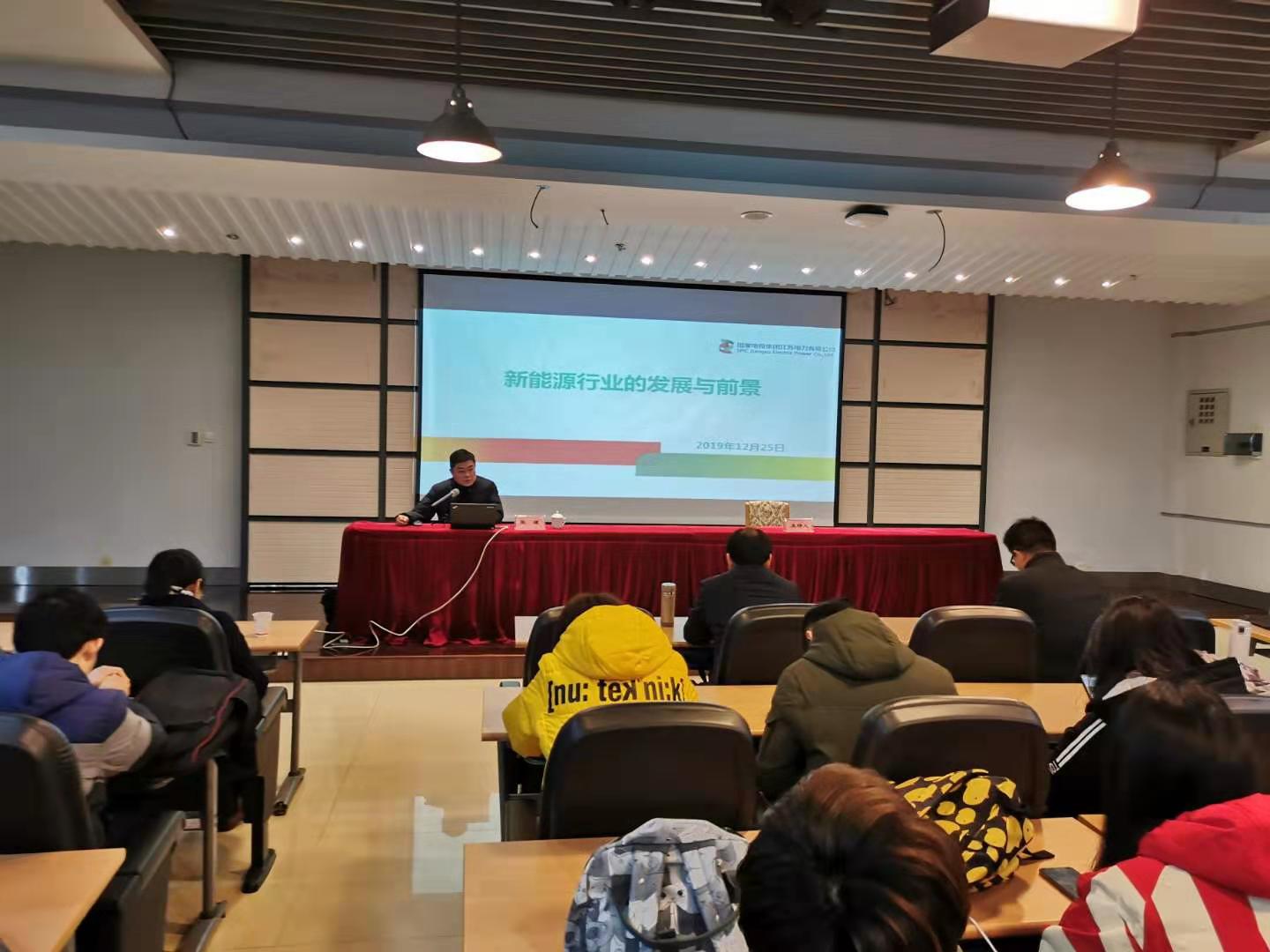 新能源行业现状如何,发展前景怎样,这些都是很多人关心的话题,12月27日上午,国家电投江苏电力有限公司无锡分公司总经理张谦高级工程师在行政楼一楼报告厅为能动师生作了题为“新能源行业的发展与前景”的学术讲座。讲座由yl23411永利集团官网院长梁绍华主持。