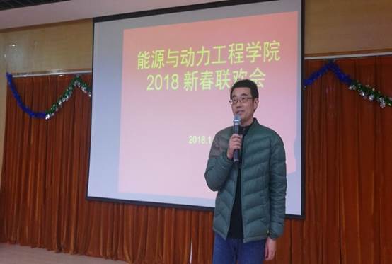他讲到:回顾令人难忘的 2017年,在校党委、校行政的正确领导下,经全院教职员工的团结奋进、努力拼搏,学院的各项工作取得了可喜的成绩,学院的事业持续发展;展望进入新时代开局的2018年,我们满怀憧憬,信心百倍,激情澎湃,斗志昂扬,让我们一起用智慧和勇气,昂首阔步,去书写一个更加灿烂的美好未来。