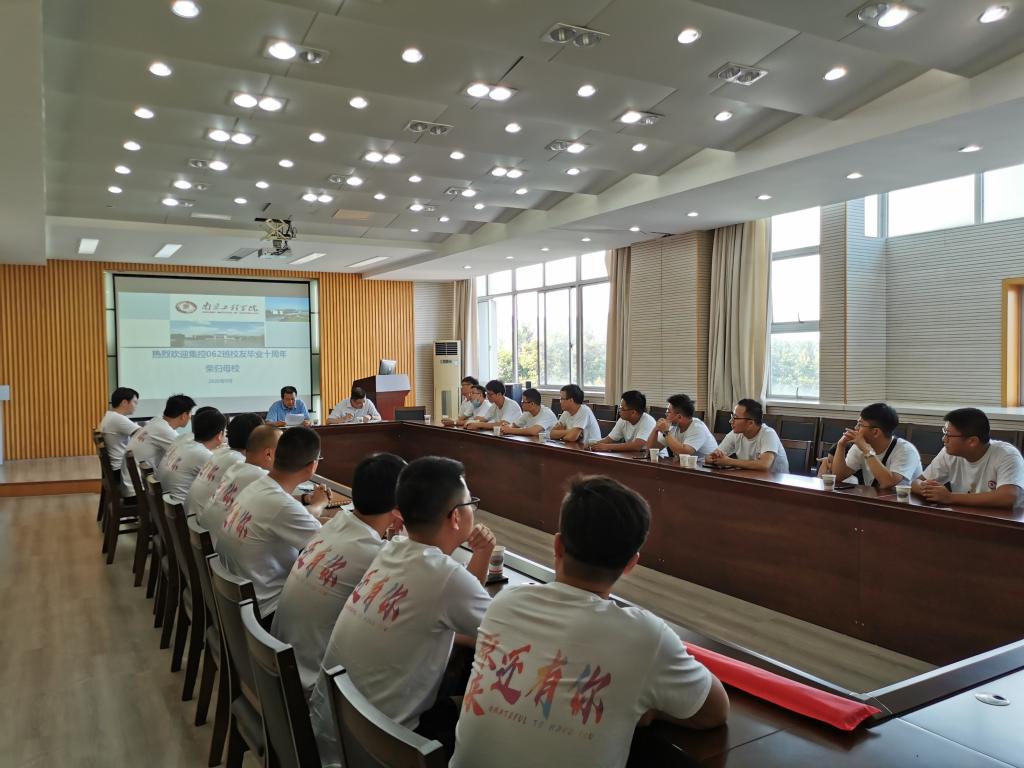 9月5日下午,yl23411永利集团官网集控062班的20余名校友,身着印有“拾年相聚”文字,带有校徽的白T恤,回到了心心念念的母校。学院梁绍华院长、陈培杰副书记及办公室负责人在至行苑·工程实践中心9-312会议室热情接待了校友们。