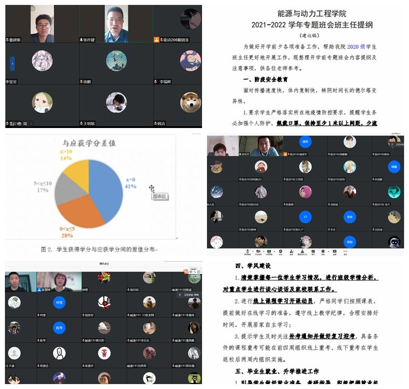 专题班会由第二班主任、班主任主持召开。会上,老师们从思想教育、疫情防控、安全教育、日常管理、学风建设等方面展开,激发同学们的爱国情怀,对常态化疫情防控下的线上教学、班集体建设及心理健康等进行具体指导,帮助学生迅速回归新学期的学习生活状态。