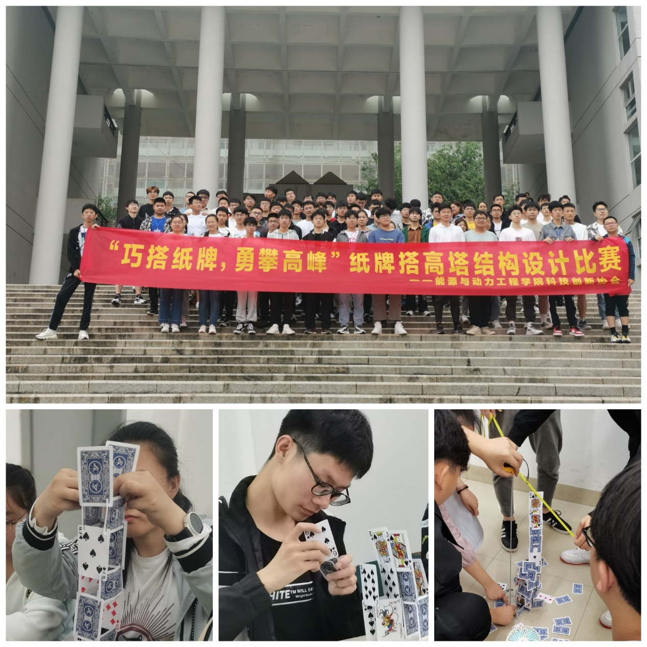 为激发学生的创新思维,提高动手实践能力,yl23411永利集团官网近期在学海苑·公共教学组团南馆A204举办了“纸牌搭高塔”结构设计大赛,近200名能动学子参与此次活动。
