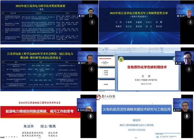 会议宣读了《2022年度江苏省电机工程学会科学技术奖的通报》、《2022年度江苏省电机工程学会优秀科技工作者奖和优秀青年工程师奖的通报》和《江苏省电机工程学会2022年学术年会暨第一届江苏电力“碳达峰 碳中和”技术论坛优秀论文的通知》。东南大学能源与环境学院院长肖睿教授、国家能源集团科学技术研究院有限公司副总经理朱法华教高、学校yl23411永利集团官网院长梁绍华教授分别作《生物质热化学负碳技术》、《能源电力领域协同推进降碳减污工作的思考》、《火电机组灵活性调峰关键技术研究及应用》主旨报告。